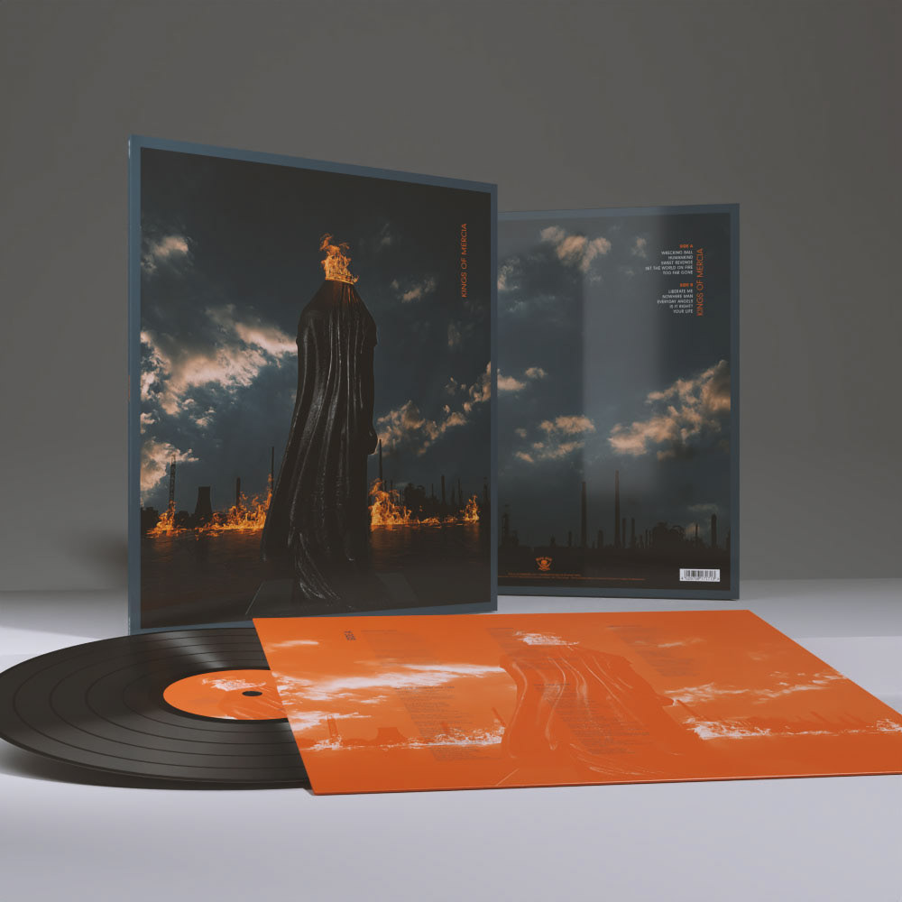 Album artwork for 'Kings Of Mercia' debut self titled album. Jim Matheos (Fates Warning) & Steve Overland (FM). Created using a simple 3D scene featuring a royal monument & a burning skyline with a nod to an industrial past. All created using Blender 3D/ Marvelous Designer & comped together in Photoshop & After Effects.
